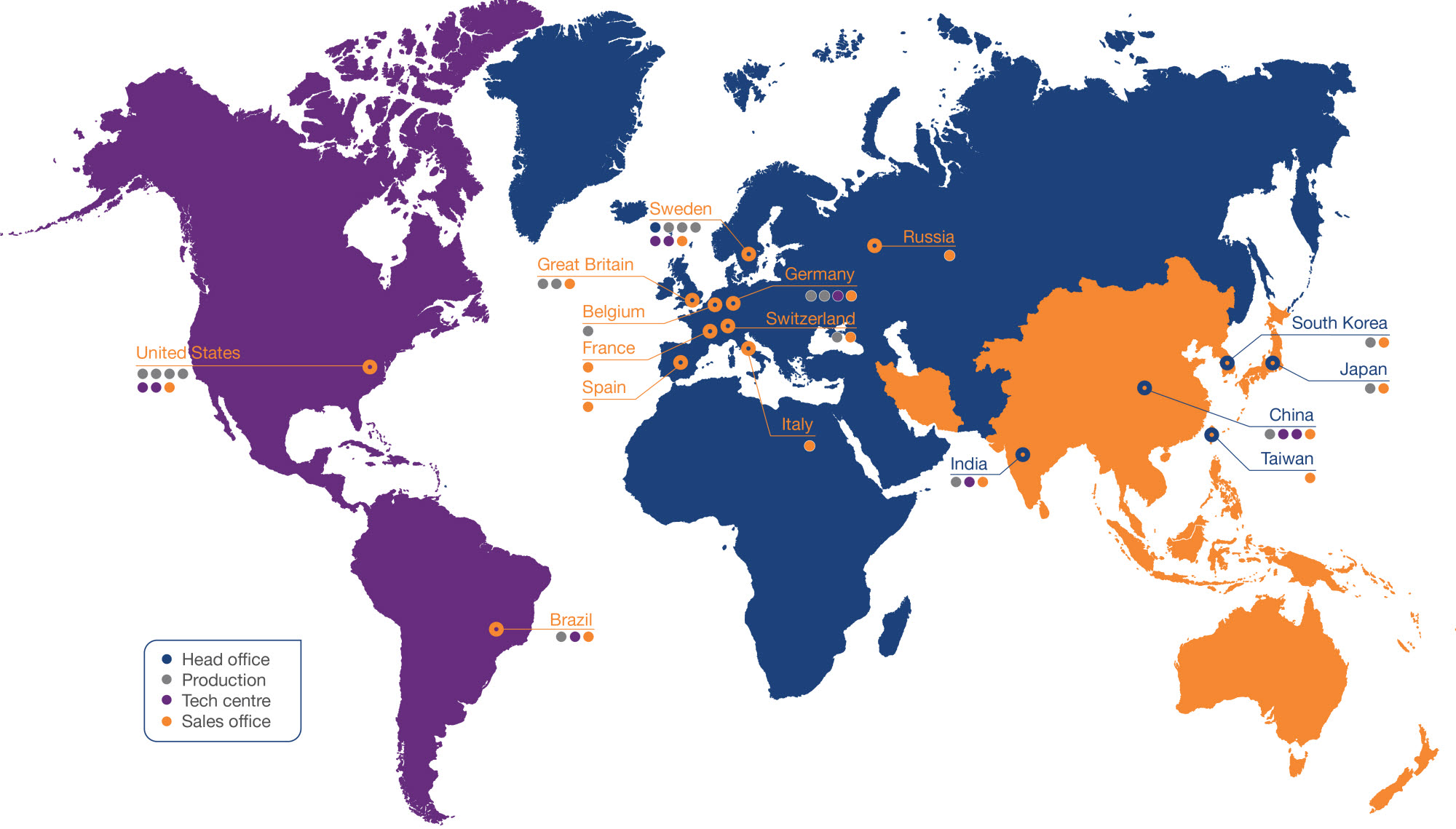 Höganäs is one of the leading global providers of metal powder solutions with an annual production capacity of over 500,000 tonnes. We have 18 strategically located production facilities in 11 countries and are represented by tech-centres and sales offices close to our customers in all three regions: Americas, APAC and EMEA.